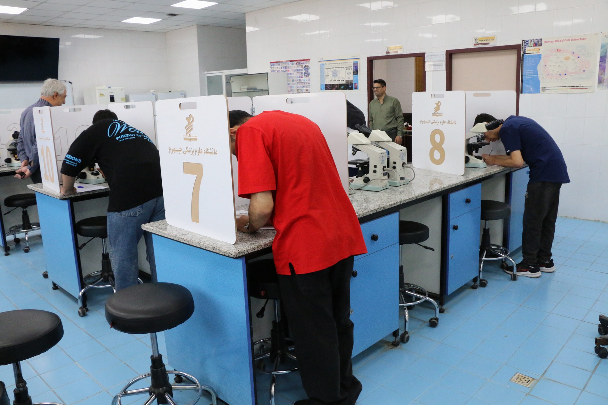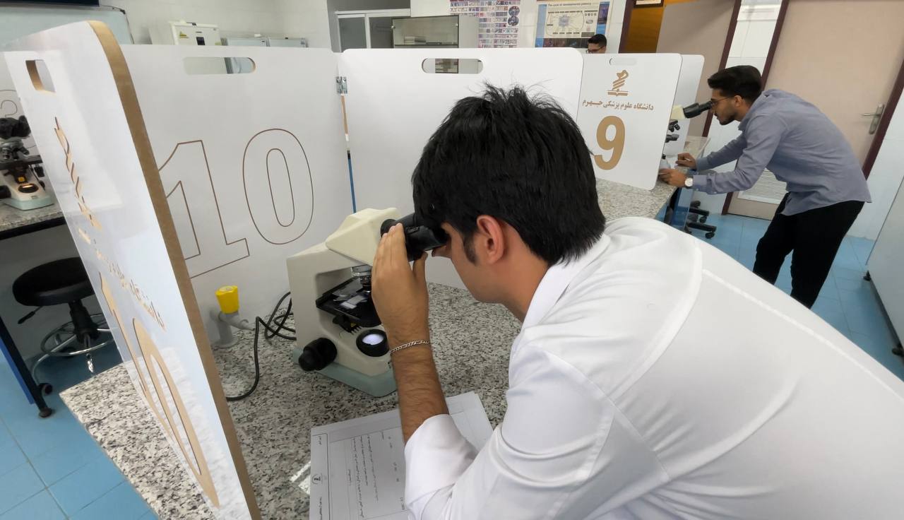 مرحله دوم آزمون به صورت ایستگاههای عملی ساختاریافته (OSCE) برگزار شد. در این بخش، دانشجویان مهارتهایی مانند شناسایی میکروبها، تفسیر لامهای خونی و سرطانی، بررسی انگلها و قارچها، کنترل کیفی تجهیزات آزمایشگاهی، تفسیر نتایج آزمایشات و پاسخ به سناریوهای بالینی را در ایستگاههای مشخصشده اجرا کردند. عملکرد هر دانشجو بهصورت عینی و بر اساس چکلیستهای استاندارد ارزیابی شد.