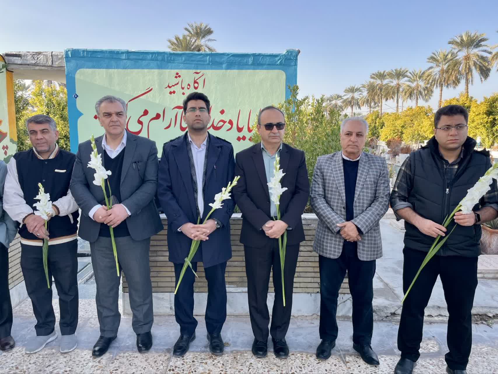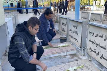 حاضرین در این مراسم ضمن غبارروبی و گلافشانی قبور مطهر، بر تداوم راه شهدا در عرصه خدمترسانی به مردم و ارتقای سلامت جامعه تأکید کردند.