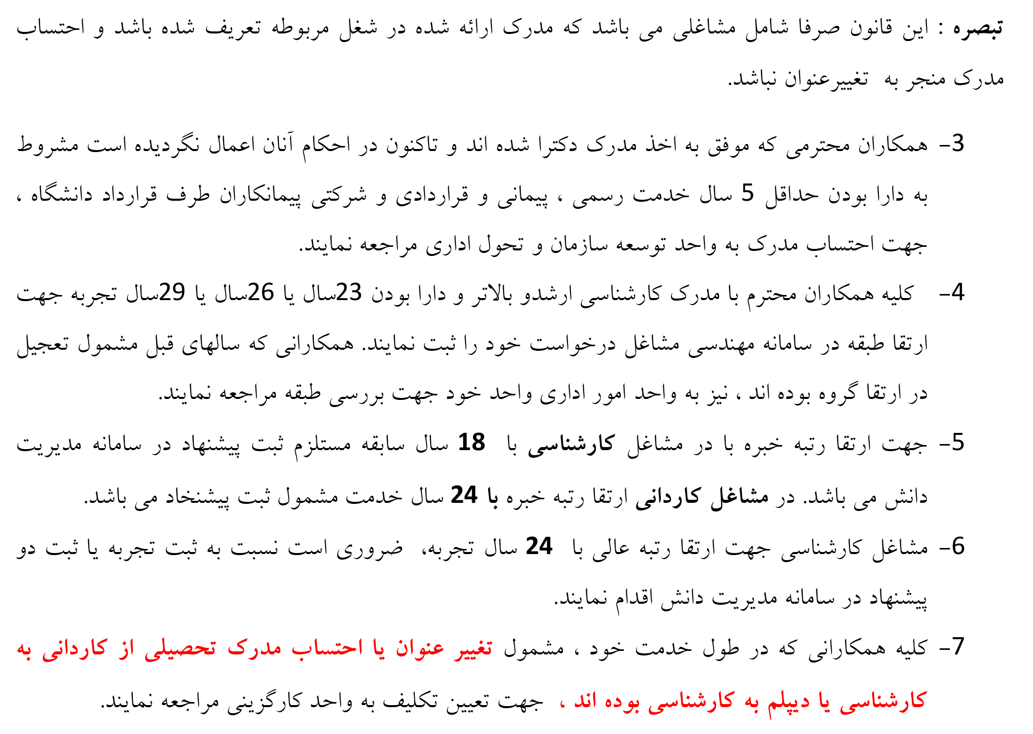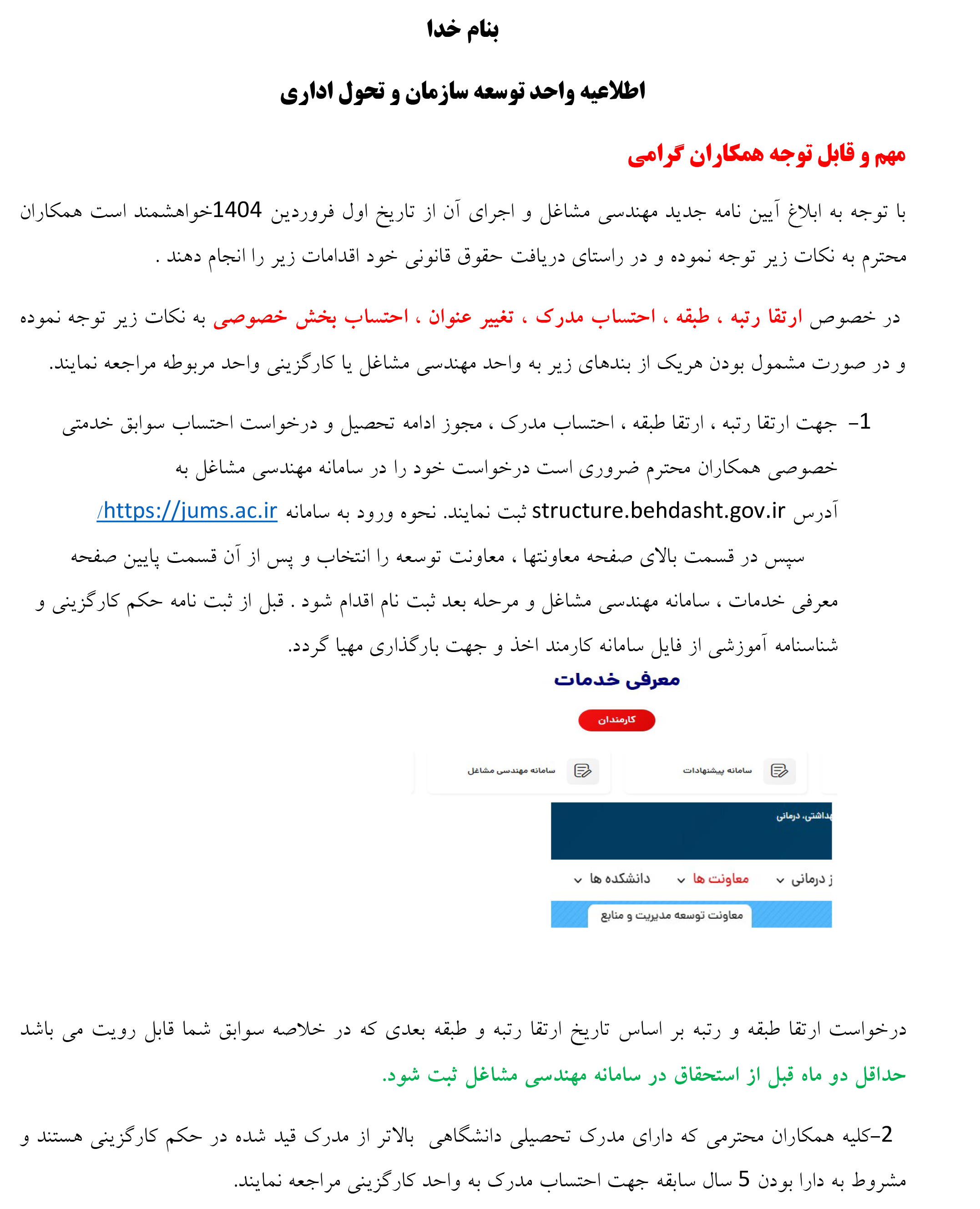 اطلاعیه مهم واحد توسعه سازمان و تحول اداری در خصوص ارتقا رتبه ، طبقه ، احتساب مدرک ، تغییر عنوان و احتساب بخش خصوصی