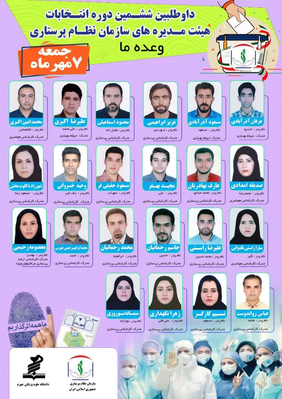 هیات اجرایی ششمین دوره انتخابات سازمان نظام پرستاری جهرم