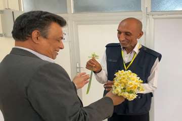خاطر نشان می گردد در این بازدید که با همراهی معاون توسعه مدیریت و منابع دانشگاه صورت پذیرفت، دکتر مهدی مصلی نژاد با اهدای گل،  میلاد حضرت علی(ع) را به همکاران حاضر در محل تبریک و شادباش گفت.