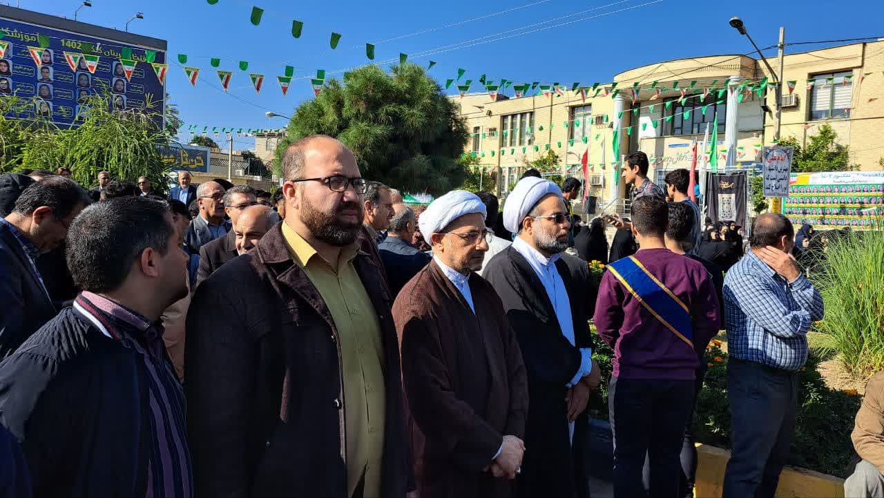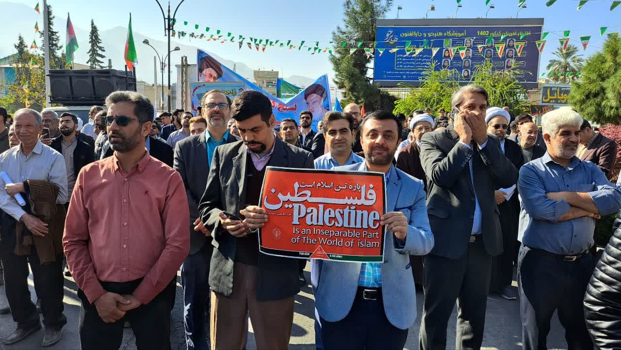 شرکت کنندگان همچنین پرچم فلسطین را به نشانه حمایت از ملت فلسطین به اهتزاز درآوردند و شعار «مرگ بر اسرائیل»، «مرگ بر آمریکا» و «الله اکبر» سر دادند.