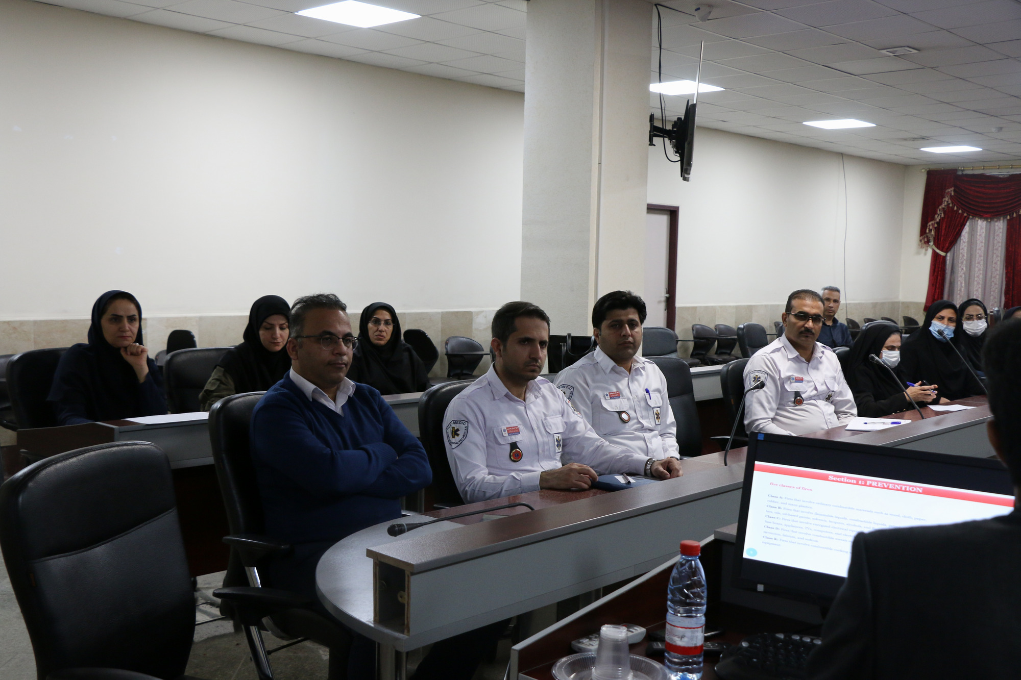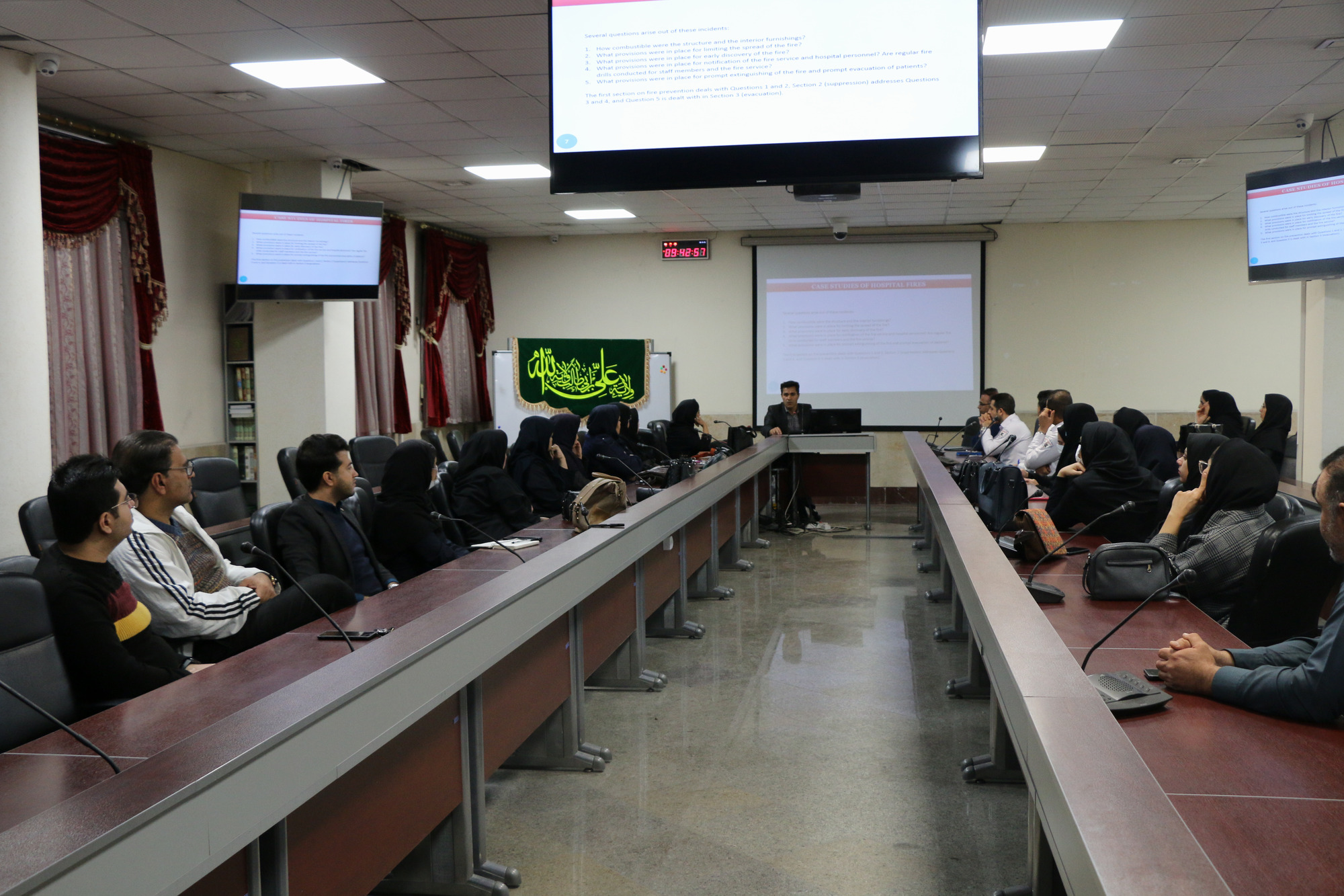 مدرس این کارگاه آموزشی دکتر وحید سعادتمند بود و در ادامه کارگاه، محدثه رحمانیان، مسئول بحران دفتر پرستاری دانشگاه، مطالبی را در خصوص ارزیابی HSE  و ایمنی بیمارستان ها با کمک آتش نشانی به صورت سالانه ارائه کرد.