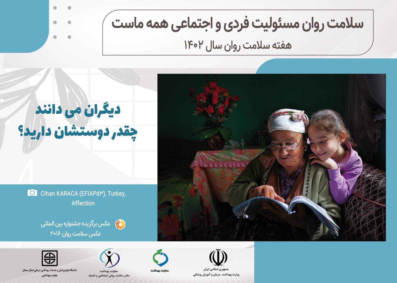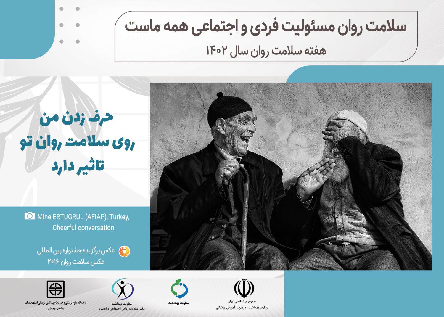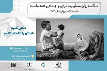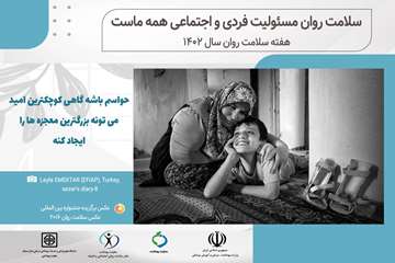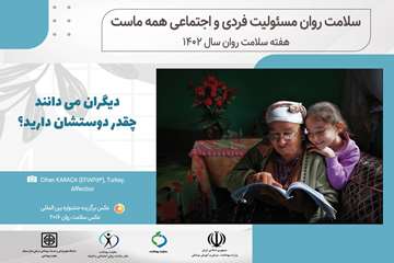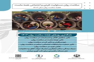 پوسترهای هفته سلامت روان؛سلامت روان مسئولیت فردی و اجتماعی همه ماست 1402/07/18 - 12:46 - تعداد بازدید: 4817 - تعداد بازدیدکننده: 4632 - کد خبر : 158 - گروه خبری : مناسب ها و پویش ها - تعداد نظرات : 0