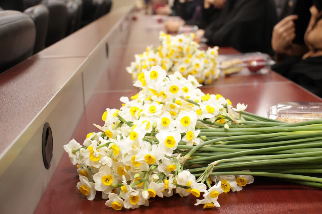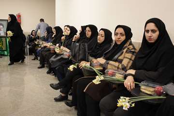 در حاشیه این مراسم که با مولودی خوانی مداح اهل بیت همراه بود، به بانوان همکار از سوی بسیج کارکنان، گل اهداء گردید.
