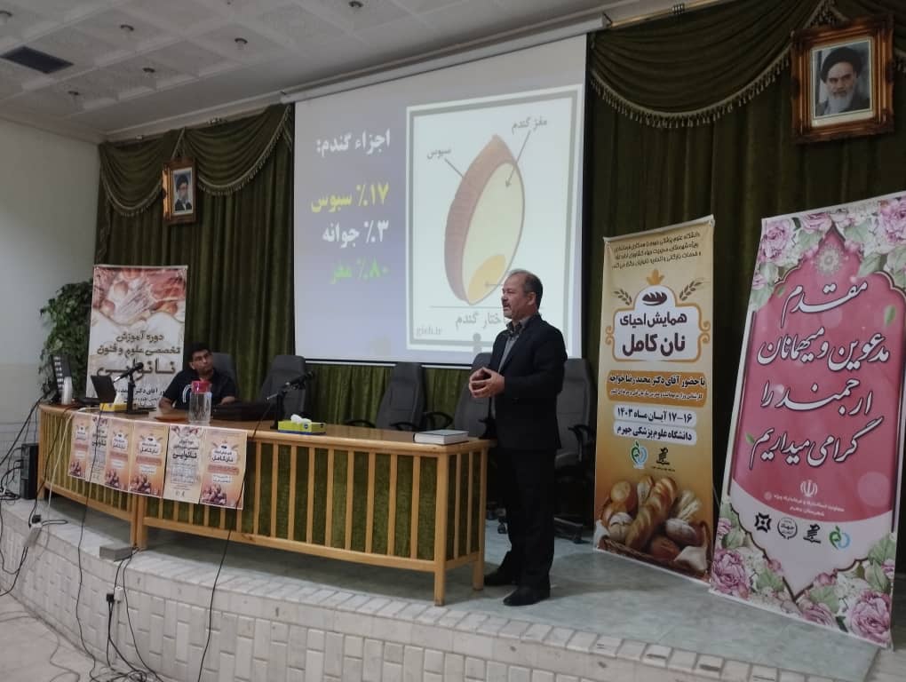 مهندس زارع اضافه کرد: در این همایش که با مسئولین فنی، کارشناسان معاونت بهداشتی و معاونت غذا و دارو، مسئولین ارگان‌ها و نهادهای شورای آرد و نان شهرستان نیز حضور داشتند، دکتر محمدرضا خواجه، نایب رئیس انجمن علوم و فنون غلات و عضو کمیته نان طیب استان قدس رضوی، به عنوان سخنران اصلی مطالب مهمی را در این زمینه بیان کرد. دکتر خواجه در سخنرانی خود به اهمیت مصرف نان کامل و مزایای آن برای سلامتی اشاره کرد و بر لزوم تغییر الگوی مصرف نان در جامعه تأکید نمود.