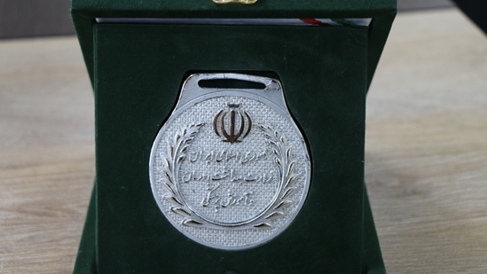 خانم شراره کرمی نیز مدال نقره خود را به رسم یادبود به معاون توسعه مدیریت  و منابع دانشگاه تقدیم نمود.