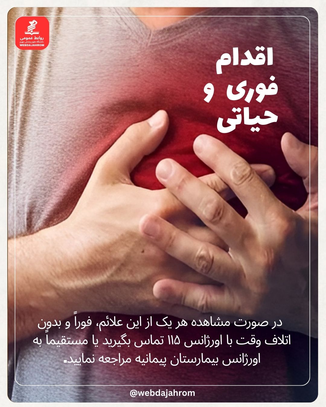 در صورت مشاهده هر یک از این علائم، فوراً و بدون اتلاف وقت با اورژانس ۱۱۵ تماس بگیرید یا مستقیماً به اورژانس بیمارستان پیمانیه مراجعه نمایید.